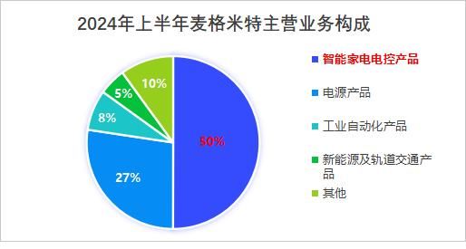 从产品构成看,智能家电业务是麦格米特的主要业务,2024年上半年营收占比为50%,同比增速达43.49%。这一高速增长,受益于以印度为代表的海外市场对变频家电消费需求的激增。