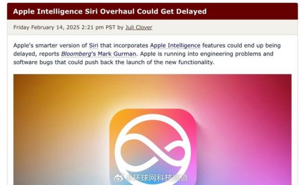 【古尔曼:#苹果智能开发受阻# 相关功能发布将延迟】彭博社的马克・古尔曼(Mark Gurman)发文,认为苹果公司旗下隶属 Apple 智能(Apple Intelligence)的新版 Siri 上线时间可能会被推迟,这是因为苹果公司正遇到“工程问题和软件错误”。