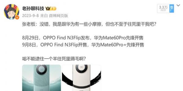 首先看华为和OPPO两家,可谓是“欢喜冤家”再次交锋,甚至网友怀疑这不是巧合,不排除是有意而为之,毕竟同样的事情发生了太多事。例如2023年,OPPO Find N3Flip定档8月29日发布,华为Mate60 Pro突然开启先锋开售,OPPO发布会几乎无人关注。9月28日,OPPO Find N3 Flip开售,华为Mate60 Pro+先锋开售再次抢走所有热度,以至于网友称OPPO为“机圈汪峰”。