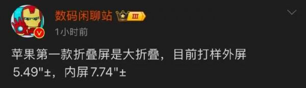 近日,知名博主@数码闲聊站在其分享中,曝光了这款手机尺寸方面的更多细节。据该博主透露,折叠屏iPhone采用双屏大折叠设计,外屏尺寸为5.49英寸,内屏尺寸则达到了7.74英寸。
