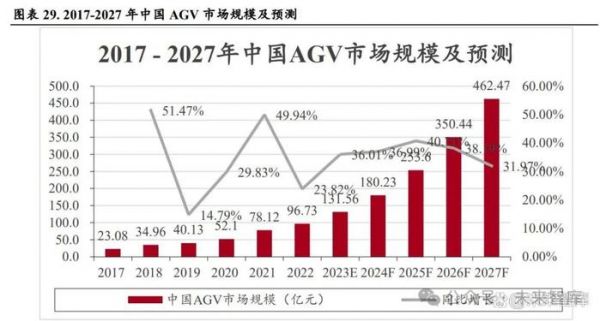 AMR 市场高速增长,公司市占率领先。根据 GGII 的预测,2022 年我国自主移动机器人市场规模约 为 96.7 亿元。由于叉车替换需求、仓储机器人需求等较为旺盛,预计我国移动机器人市场在 2027 年将超过 460 亿元,10 年 cagr 达 35%。根据 GGII 的统计,2022 年中国移动机器人市场的市场销量 8.14 万台,其中海康机器人市场占有率超过 15%,位居第一,具备较强先发优势。