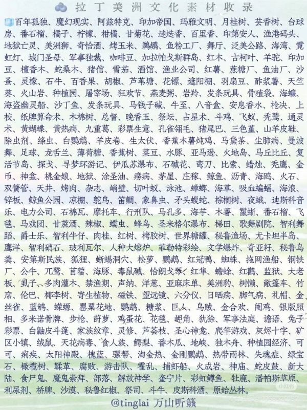 (网友以不同文学类型为基础制作的文化素材收集@万山听籁)