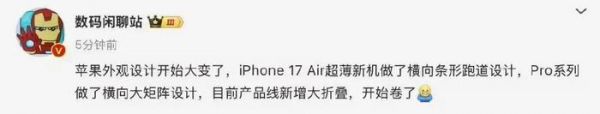 近日,在知名博主@数码闲聊站的分享中,不仅曝光了今年iPhone 17系列多款机型的外观设计,还透露了苹果首款折叠屏iPhone的新消息。