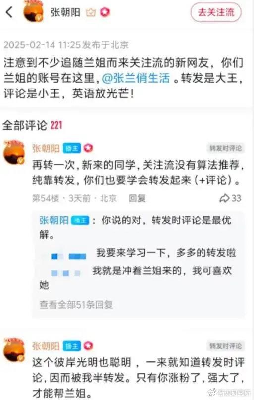2025年1月,张兰因“发布不当内容”被抖音无限期封禁,其与汪小菲的直播账号也同时遭禁。面对这一变故,张兰迅速调整战略,于2月14日携新账号“张兰俏生活”入驻搜狐视频,并获得搜狐CEO张朝阳的公开支持。张朝阳不仅在社交平台发文鼓励用户为其“涨粉”,还多次在张兰的评论区互动,为其引流。