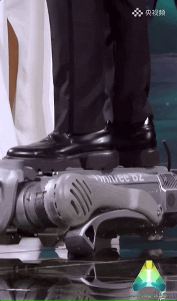 宇树科技的四只机器狗也曾在总台亮相,其中宠物机器狗“糯米”能够在家里陪伴老人、小孩,能负重100多公斤的机器狗“大白”,现场将主持人尼格买提高高驮起。