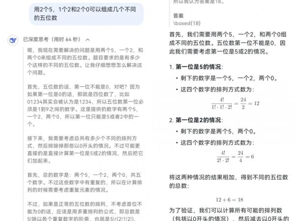 面对数学题,DeepSeek也能有思考,有推演,有验证和结论,让孩子能将题目拿捏得明明白白。