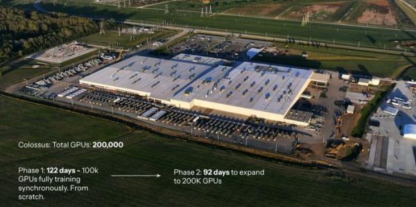 xAI建立的数据中心 来源:马斯克直播截图“马斯克在直播中没有提到这20万块GPU是否为‘单集群’,如果答案肯定的话那是非常大的突破,因为当前国内大部分(数据中心)还是1万块卡的集群。”快思慢想研究院院长,原商汤智能产业研究院创始院长田丰告诉新京报贝壳财经记者。