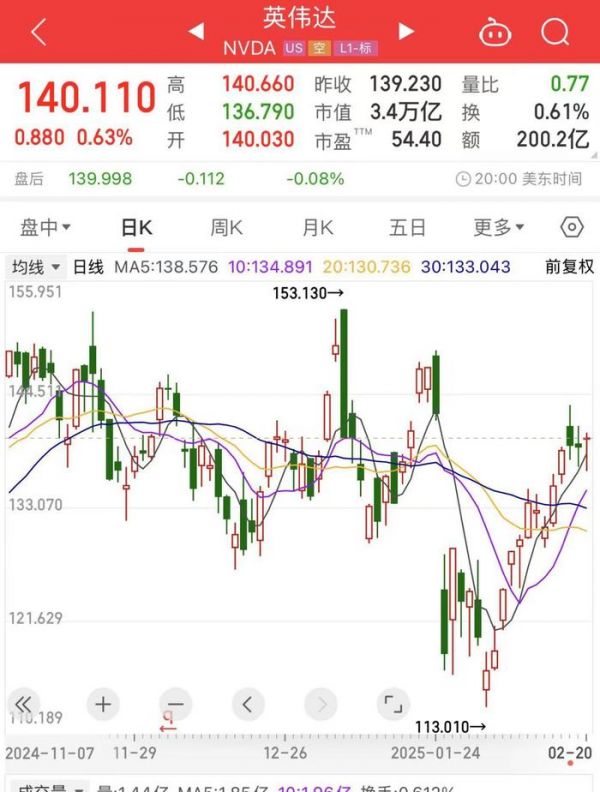 事实上,科学界有一种观点认为,随着互联网上可用于训练的数据接近枯竭,“Scaling Law”将面临瓶颈,而Grok3、o3-mini等在DeepSeek-R1之后发布的大模型则证明“Scaling Law”依然有效。这也提振了市场对算力供应商的信心。截至北京时间2月21日,英伟达的股价为每股140.11美元,自1月24日至今呈现出了一个“深V”走势,DeepSeek-R1发布后所损失的市值现已基本“收复”。