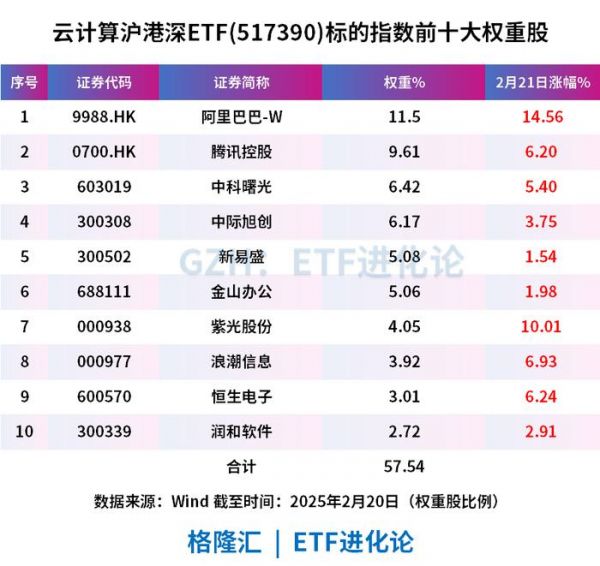 过去一年,云计算沪港深ETF(517390)跟踪的指数涨幅达到85.38%,跑赢沪深300指数68.74个百分点。春节后首个交易开始,到2月20日,该ETF合计净流入1.07亿元,近10个交易日有8天获得资金净申购。