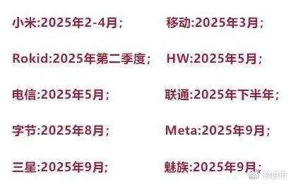 今年将是AI智能眼镜上市和发货的高峰期,预计的时间安排如下: