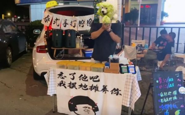 去年地摊经济火了之后,刘师傅就开始转行摆地摊买奶茶,虽然不跑车了,车也不能闲着,小小一改动,网约车变成移动奶茶店,一晚上赚个两三百块钱,白天还能找个班上,社保和五险有着落了。