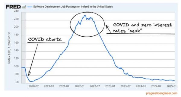 来自求职网站 Indeed 的数据显示,网络上继续活跃招募的软件开发者职位数量正在发生变化。