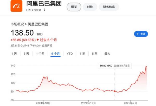 电商业务也有起色,淘宝天猫收入同比增长5%。美股当日大涨8%,港股次日(2月21日)开盘飙升10%,创三年新高。
