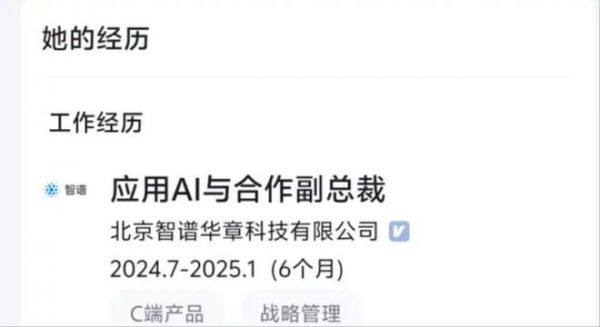 Tech星球独家获悉,智谱应用AI与合作副总裁李惠子已离职,根据其个人社交平台的消息显示,其在智谱公司的最后任职时间是在今年1月。据悉,李惠子主要负责公司的战略管理规划和C端产品商业合作等方面。