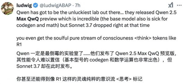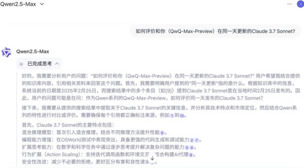 一众信息流中,不少网友一眼发现了今天的大戏。因为 Qwen 推理模型「QwQ-Max 预览版」的亮相,刚好赶上了也在今天官宣模型推理能力大跨越的 Anthropic,后者抢走了不少注意力。但其实 QwQ-Max-Preview 已经足够出色,包括思维链过程。