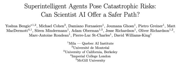 相关研究论文以“Superintelligent Agents Pose Catastrophic Risks: Can Scientist AI Offer a Safer Path?”已发表在预印本平台 arxiv 上。