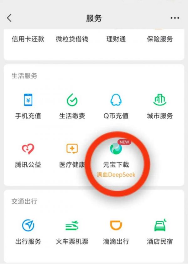 微信方面向Tech星球表示,为了让大家更快、更稳定地体验到DeepSeek,腾讯内部协调部署,在微信的“我”-“服务”-“生活服务”里限时提供“元宝下载”,在元宝里可以体验DeepSeek-R1满血版及最新的混元深度思考模型T1。