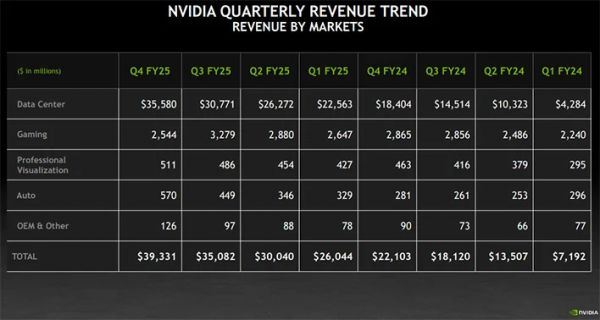 英伟达的这份财报正值市场对AI芯片领域能否持续高增长既充满期待又存有担忧之际。从数据趋势上看,英伟达的势头可能依然能够保持下去,但我们或许很难在短时间内再看到过去一两年当中那种标志性的爆炸性的业绩增长了。
