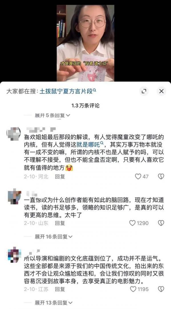 这种带有文化属性的专业视角看哪吒,实际上起到了连接创作者和观众,帮助观众理解剧情和幕后的作用,也激发了观众对电影的进一步理解。