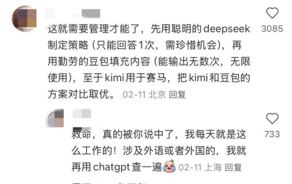 脑子活泛、业务能力强但总摸鱼的小明是“DeepSeek人格”,而那个沉默不语只是一位跑程序的小王,则荣获“Kimi人格”。
