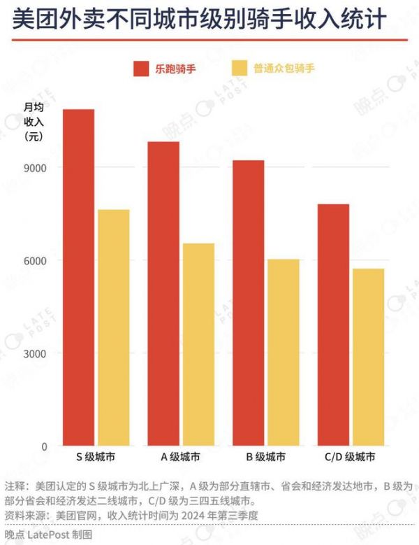 美团数据显示,在北京、上海等一线城市和江苏镇江、湖南株洲等四五线城市,高频普通众包骑手人均月薪为 7629 元和 5720 元,按年折算,高于 2023 年以上几个城市的城镇居民人均可支配收入。