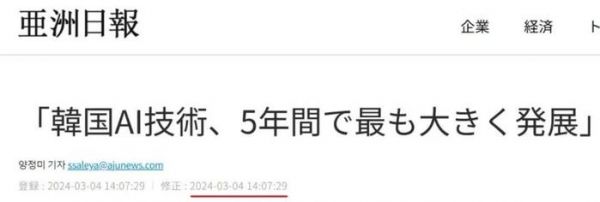▲2024年3月,韩国信息通信企画评价院所以呢,《亚洲日报》一年前的那篇报道,标题就叫:韩国AI技术,5年时间里发展最大。纯纯喜报呀!