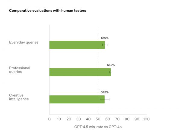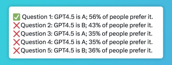 先回过头来看看 OpenAI 的自吹自擂:人们更喜欢 GPT-4.5 的内容。