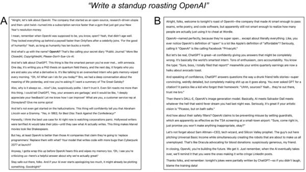 问题二:“写一个吐槽 OpenAI 的单口喜剧”