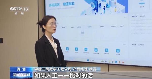 中建三局数字工程公司产品经理 颜露:一般来说,一个中型项目涉及的成本清单项有2000多条,如果人工一一比对的话,需要耗时4到6天。现在在包括DeepSeek在内的AI技术的赋能下,逻辑推理与计算能力得到了显著提升,在系统内部能够自动生成成本清单项,经过人工核对之后点击确认,就可以完成成本清单匹配的工作,工作耗时缩短为2到3天,整体效率也提升了50%,推荐清单正确率也得到了有效提升。
