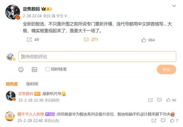具体来说,博主称全新的智选,不只是外围之前所说专门重新开模,连代号都用中文拼音缩写,这可不是一件小事。