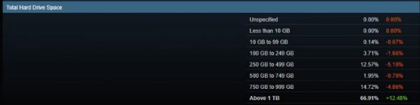 硬盘容量方面,使用大于1TB硬盘容量的玩家数量增幅达12.48%,占全体用户的66.91%。尽管固态硬盘价格近期有所上涨,但与过去由美韩企业垄断市场时相比,价格仍然相对较低。这一变化部分归功于长江存储等国内企业的崛起,打破了原有的垄断格局,不然我们今天可能还在享受着1元1GB的天价硬盘。