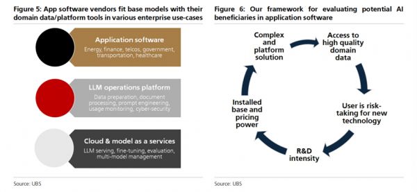 尽管大型语言模型的普及带来了潜在的威胁,瑞银认为传统软件供应商所提供的定制服务依旧不可或缺。这些公司善于结合领域数据使用通用AI模型,解决具体的企业问题。