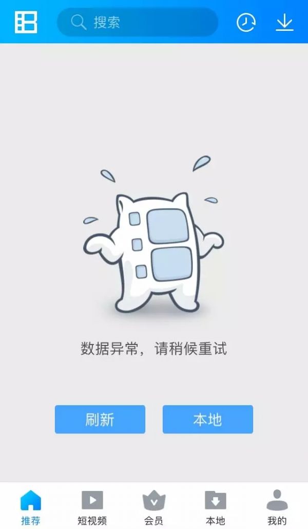 打开暴风影音App,在线内容均已无法加载,首页显示一片空白。