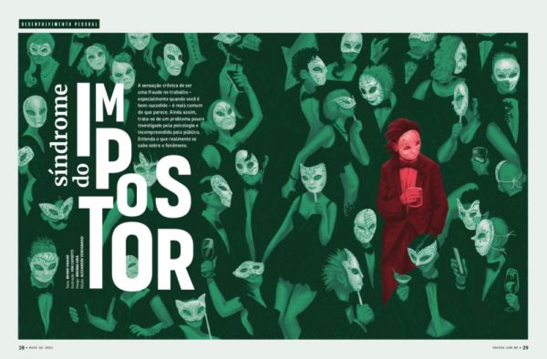 ▷仿冒者综合征(Impostor Syndrome)是一种心理现象,指个体在取得成就后,仍无法认可自己的能力,认为成功是偶然的,担心被他人揭穿真相,从而陷入持续的自我怀疑和焦虑中。如《了不起的盖茨比》中,主人公盖茨比通过伪装和财富积累试图融入上流社会,但始终无法摆脱内心的不安和“冒牌感”,这正是该综合征的典型写照。图片设计:BrennaOriá