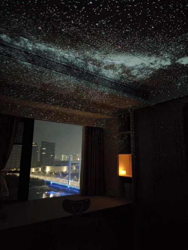 在疗愈室内,顾客可以根据自己的需求来要求AI投影出接下来需要的疗愈场景,有高山流水、森林小屋、月夜星空等环境,还伴随有环境音效。