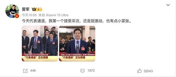 为什么是雷军第一个亮相“代表通道”接受采访?
