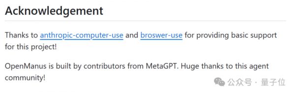 正如OpenManus团队在项目致谢中提到的,Claude厂商Anthropic去年上线的computer-use,以及YC投资的项目browser-use,都给OpenManus提供了基础支持。
