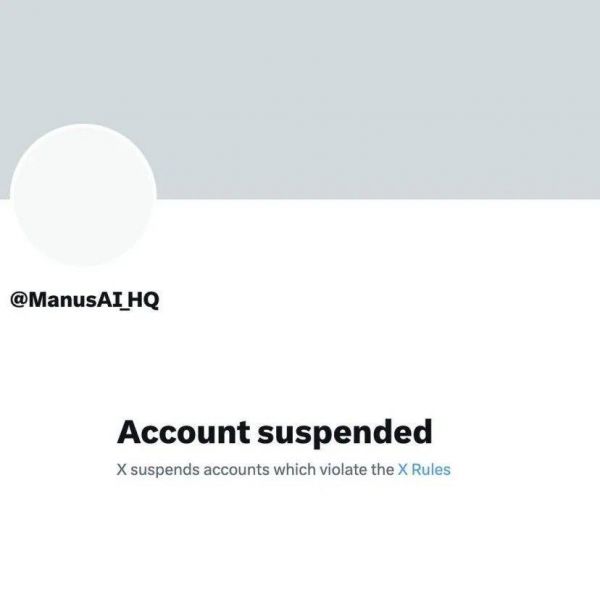 不知是何原因,目前Manus在海外社交媒体“X”上的官方账号已被冻结。