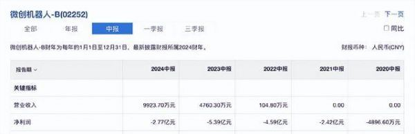 随着产品陆续获批及放量,微创机器人的营收增速还是较为可观的。2024H1实现营收近一亿,且有35%来自海外。按照近期发布的业绩快报,预计2024年全年收入同比增长 145%-155%,即全年营收预计为2.57-2.68亿(2023全年营收1.05亿元);预计2024年亏损4.35亿至5.21亿元,同比减少40%-50%(2023年亏损8.69亿元)。