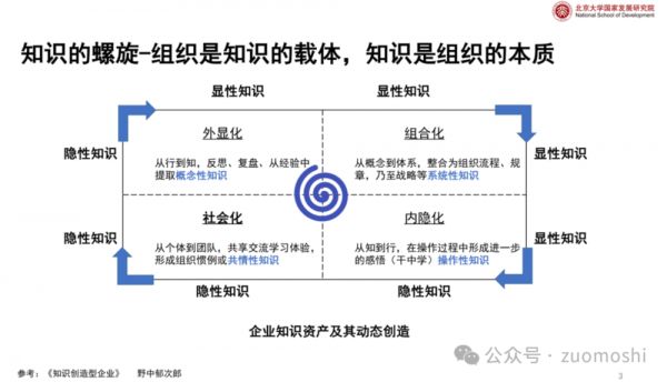 过去知识创造过程里,人和组织是二元分立的,人是知识创造的主体,创造的东西需要在组织中存储,所以往往被命名为知识库等等。