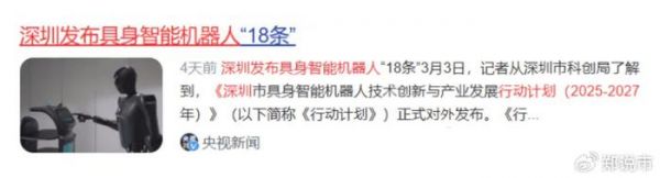 深圳发布《具身智能机器人行动计划(2025-2027)》,不仅要在核心技术上实现突破,还要打造千亿级产业链。