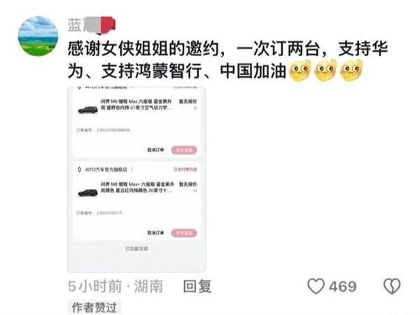 她号召已经完成订单的网友,在评论区把订单截图晒出来,让他们看一看,用事实反驳质疑抹黑的人。在退休教授发出号召后,之前订车的网友纷纷在视频评论区下方,把订单截图发了出来(因为比较多这里选了几张供大家参考),同时留言声援退休教授,称:力挺华为,力挺女侠。