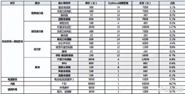 人形机器人成本拆分(来源:西南证券)