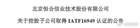 如恒合股份(832145)就从上游芯体寻求突破。其控股子公司芯智感(主要从事工业和汽车压力传感器相关产品的研发和生产),就在上个月末取得了认证书,认证的范围就是压力传感器的陶瓷芯体的设计和制造。