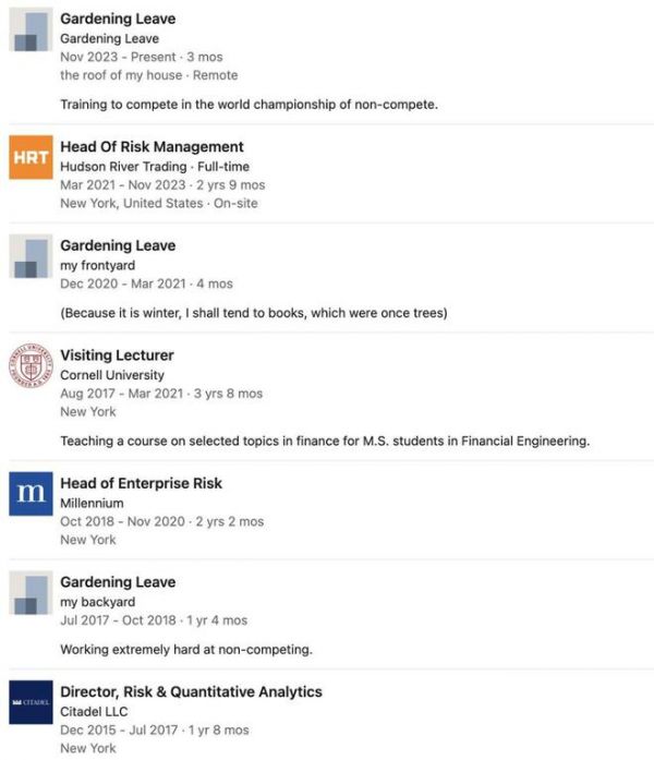 LinkedIn 简历中的 Gardening Leave