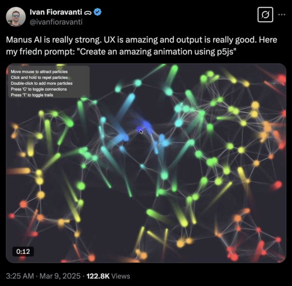 Ivan Fioravanti,CoreViewHQ GenAI 联合创始人兼首席技术官也在使用后在 X 上发出感慨,“Manus AI 真的很强大”: