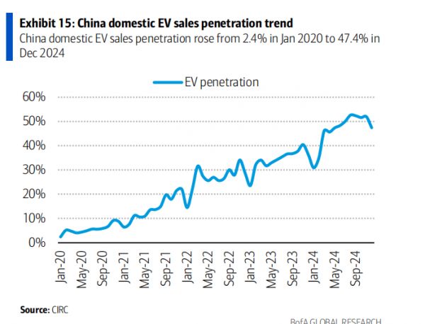 2020~2024年间,中国电动汽车零部件成本下降了40%~50%,推动中国乘用电动汽车渗透率从2020年的6%飙升至2024年的45%。如果更多机器人原始设备制造商(OEM)能够充分利用中国供应链,全球人形机器人的普及速度或将大大加快。