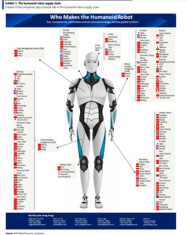 但问题来了,谁将主导这场“机器人革命”?答案或许出乎意料,美银认为,中国强大的供应链能力将成为降低成本、加速普及的关键。
