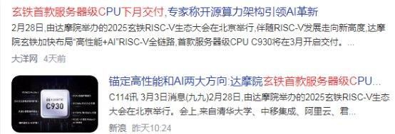 巧合的是,2月28日,阿里巴巴达摩院2025玄铁RISC-V生态大会举行,发布首款服务器级RISC-V处理器玄铁C930芯片,并表示3月开启交付。