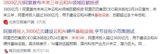 值得注意的是,就在2月24日早上,阿里CEO宣布,未来三年,阿里将投入超过3800亿元,用于建设云和AI硬件基础设施,总额超过去十年总和,足见阿里“All in AI”的决心!